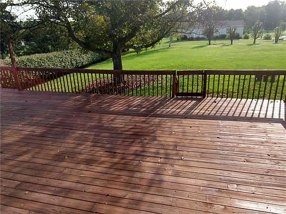 Located in the highly sought after South Butler County (Knoch) School District is this spacious double wide home on a block foundation with 2 car integral garage and partial walkout basement. This 3 bedroom, 2 bathroom, home features an open floor plan. The spacious kitchen with large eat-in dining area, complete with bench seat and skylights for additional daylight, is adjacent to the large family room with a beautiful large stone fireplace. French doors open to a massive rear deck, perfect for entertaining. The deck overlooks the rear level yard, with adjacent landscaping, providing you with a private oasis. The master bedroom has two walk in closets and the bath features a private shower and water closet, large tub and his and hers vanities along with natural light provided by a skylight.
