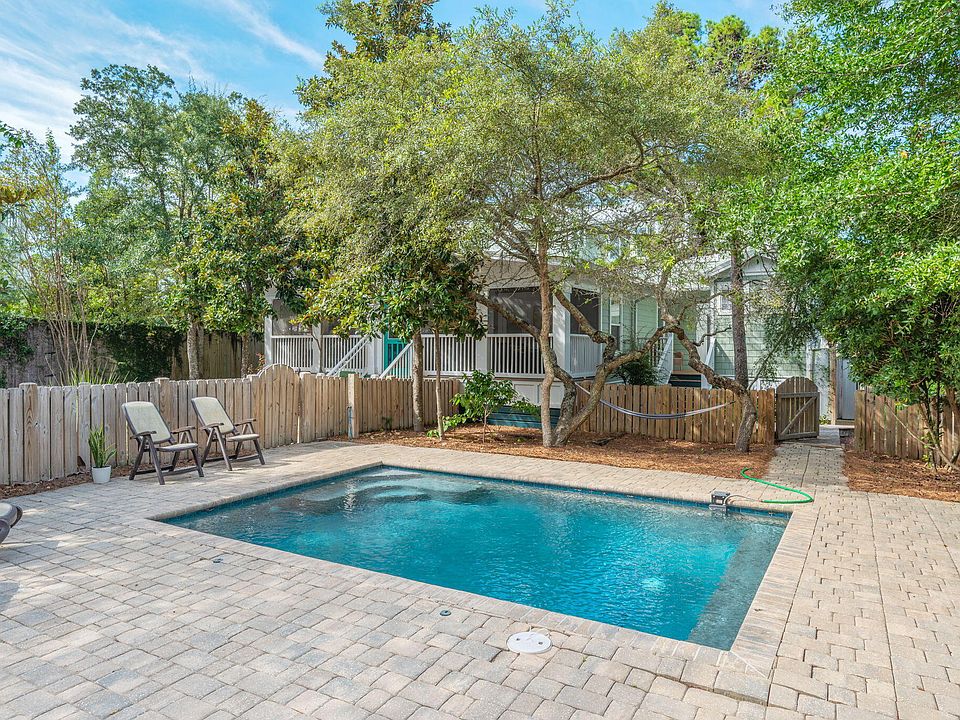 ''Close Enough'' is located in Seagrove Beach literally minutes from Seaside's Town Center where dining, shopping, and entertainment await, and only 2 blocks from the Dogwood/Thyme Street beach access. This adorable home started as a 1 bedroom 1 bath with only 864 sq-ft. Maintaining its Old Seagrove' charm, the home was completely renovated in 2010 and boasts a large screened front porch, 2 first floor master suites each with private entrance, deck, and outdoor shower; a third ensuite guest room and a spacious loft with twin beds and a second living area on the second floor. For outdoor enthusiasts, enjoy dining on the grill deck, unwind by the large heated pool, or relax in the hammock under the trees. When it's time to go to the beach, all your gear is in the ample storage building and golf cart awaits in the separate garage to explore all of 30A. "Close Enough" sits back from the street allowing privacy and enjoyment of the natural landscape. This compound-like property's oversize lot provides abundant parking and the option to add a carriage house, enhancing its appeal and potential.