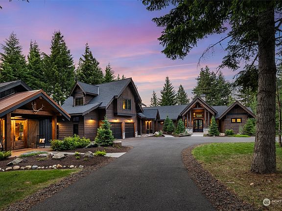 Feel the calming presence of this luxury home on the 13th tee of the Tumble Creek Club. This Brock Smith home boasts soaring ceilings & designer touches throughout. Relax in the great room under the stone clad fireplace, entertain in the luxury kitchen w/modern elegance, top of the line appliances & double island. Main floor primary suite w/custom wall coverings, window seat & spa-like bathroom. The upper level holds 2 guest rooms, full bath & lounge. Fireplace seating, outdoor kitchen w/gas grill & firepit under the stars is a great way to close out a night. Guests can sneak away to the detached cabin w/1-bed, bath & bunk beds. Adventure to Tumble Creek & explore it's nature trails, golf, clubhouse and community only 80min from Seattle.