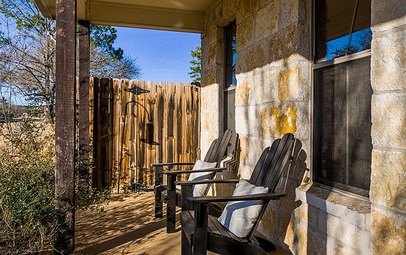 Stylish, naturally appointed, modern house set on spacious double lot, right on town's edge. Open plan living downstairs with gourmet kitchen offering stainless steel counters & appliances, walk-in pantry and separate dining area connected to living room with stone fireplace. Spacious master bedroom includes a huge master bath with jacuzzi tub & built-in steam shower + vast closet space. Additional room to be used as study/den or bedroom. 2 bedrooms upstairs with Hollywood bathroom & extra space for playroom/workspace. Arbor connects back porch to guest house, workout room and garages.