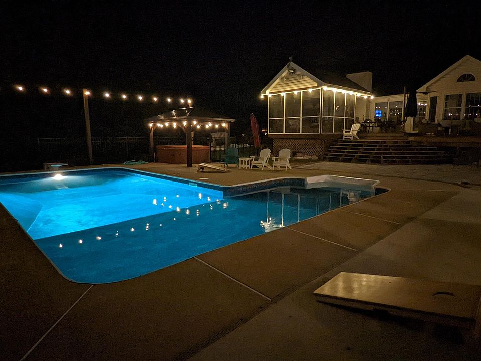 Open floor plan Cape Cod on 2 acres. Full basement with 1,100 sq ft professionally finished and 800 sq ft for storage. Large inground heated swimming pool, large multilevel composite deck with new paver patio and fire pit (2022) and screened in patio. Cleared woods backed to expansive woodlands with trails. Additional 24x24 2 car detached garage/workshop. New asphalt driveway 2022, new A/C and heating system 2021, new roof 2021. Renter pays for utilities. Renter pays for pool maintenance. Small to mid size dogs allowed.