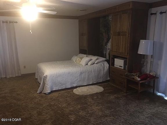 Sharp ranch style home very well maintained. Sets on 3+ acres. Large master bedroom with walk in closet, entrance to patio and master bath with jetted tub. Brick wood burning fireplace. Formal dining room off kitchen. Patio area has a built in safe area along the concrete wall. Garage is finished with paneling, sprayed ceiling and is heated.