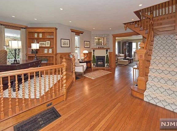 In the Heart of Ridge District, this restored Ridgewood home is set on .8 acres offering walk to train, town & school location. Pass through the iron gates and Lemonade Porch to discover generous sunlit rooms, custom built-ins and attention to detail throughout. Kitchen w floor to ceiling subway tiles, La Cornue stove, tin ceiling & radiant limestone flooring has access to BBQ Porch. Mast Bdrm Suite offers Sitting Rm, 2 WIC's w/custom built-ins, balcony and spa Mast Bath. All 6 Bdrms are generous w/abundant closets storage. 3rd Fl has bright Sitting Rm, Turret w Loft, 2 Beds and Bath. Fresh Lower Level offers an 26X26 Rec Rm, kitchen facilities, Full Bth and pool access. Carriage House boasts 5 Car, Half Bth, & 2nd floor Office/Gym 37x23. Backyard retreat includes pool, hot tub, and lawns with mature plantings. Prepare to begin a most treasured journey as you share this extraordinary residence with loved ones in the years to come. New Taxes. Owner holds NJ RE lic. Flr plan avail.