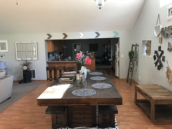 Neat three bedroom two bathroom home with large rooms throughout, a huge living room with cathedral ceiling that is open to the remodeled kitchen. Most appliances stay with the home. Bathrooms are remodeled too, and there is a two car attached garage. Beautiful home on corner lot.