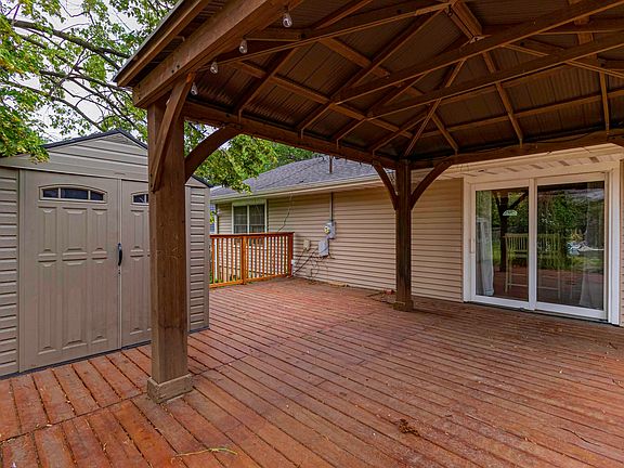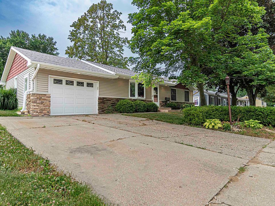 This charming 3-bedroom ranch could be yours to own! Enjoy the many updates and amenities this home has to offer including new paint, a tankless water heater, bathroom remodel, new plank flooring throughout most of the home, stone and vinyl siding, 30-year shingles (2014), and an oversized heated garage. The fully applianced kitchen boasts a large island breakfast bar, maple cabinetry, and Corian countertops. Step out the sliding glass door onto the 27x20 covered back deck and soak in the view of your spacious, fully fenced yard equipped with a firepit and TWO storage sheds. Appliances are included but not warranted and are sold as-is. Don't miss your opportunity, schedule a showing today!