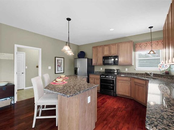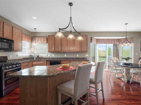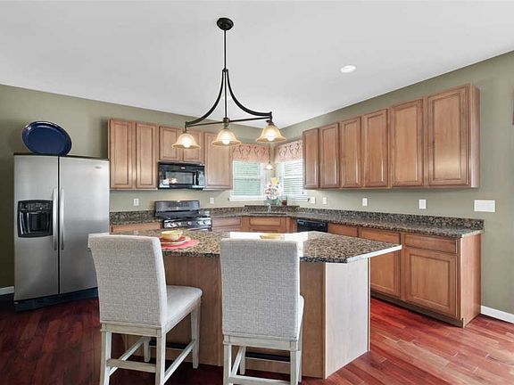 Gorgeous 2-story has everything you want! Tall 9' ceilings & rich hardwood floors lead to the great room w/gas fireplace & well-appointed kitchen boasting granite counters, breakfast bar island, 42" cabinets w/roll-out trays, & SS appliances, including a 5-burner gas range w/double ovens. Entertain in any weather on the outstanding covered deck w/roll-up privacy shades. Serve guests from the butler's pantry next to the formal dining room. Serene owner's suite w/French door entry has a giant walk-in closet & private bath w/dual sinks, separate shower & tub. Finished, walk-out lower level w/9' pour has a rec room w/built-in speakers & a bar, private office, full bath & bonus room. Lush, irrigated, landscaped yard has a patio w/firepit. 3-car garage. Dual, zoned, HVAC. Located on a quiet cul-de-sac in a great neighborhood w/pool, lake, walking trails, playground, BB court & more. Wentzville (Liberty) Schools. Easy access to I-64/364 & amenities. 13-mo home warranty included. See it today!