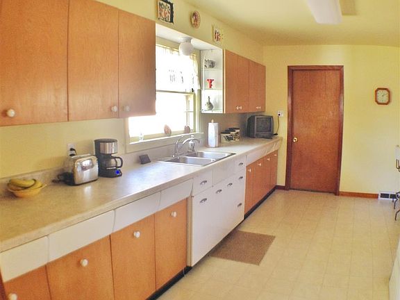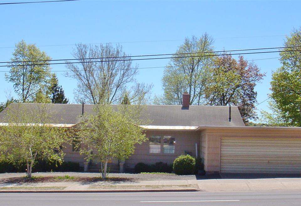This mid-century ranch is so solid- you barely hear the noise from the street. Enter into the knotty pine entry & you will be amazed at the gorgeous maple flooring through most of the home. There is birds eye maple mixed in with this gorgeous wood work. The living room is huge, bright & airy and overlooks the back yard with a peekaboo view of the Portage Canal. The kitchen has a retro feel with newer counter tops providing lots of counter space. A snack bar separates the kitchen from either additional dining space or a lovely family room. There is also a formal dining area off of the living room. The bedrooms are very large, 2 with walk in closets, one without a closet that has been used as a family room in the past. The main bathroom has a new walk in shower but a tub could easily go in this space. The hallway of the bedrooms is lined with drawers and closets set in the same beautiful knotty pine. A walk up attic, full basement & two car garage plus a storage shed in the yard provide more storage than most would ever need. The furnace was replaced in 2008. The south half of the roof was reshingled in 2013. The homes interior has fresh paint. The air conditioner and water heater were installed in 2005. This is a very convenient & well maintained home; dont overlook it because of the location. This would make a fabulous office building also.