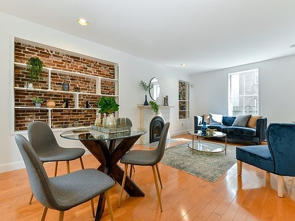 In the middle of everything but tucked away off the street you will find this rare brick townhouse that feels like an attached single family. Entrance leads to the open living/dining room with exposed brick, wood floors and decorative marble fireplace mantle. Kitchen with wood cabinets and granite countertops. A half bath completes this floor. Upstairs gives you a loft like vibe. The landing is topped by a skylight and a reading nook providing three window exposures. There are two-bedrooms, two walk-in closets and an updated bathroom with walk-in shower plus a skylight. The lower level (471sq' not included in living area) is where your creative juices can take over to make it your own. Outside you will find a large fenced in patio that offers the perfect retreat for enjoying the outdoors. Located on a prime Mid Cambridge street with swift access to Harvard and Central Squares, The T, shopping, and restaurants.