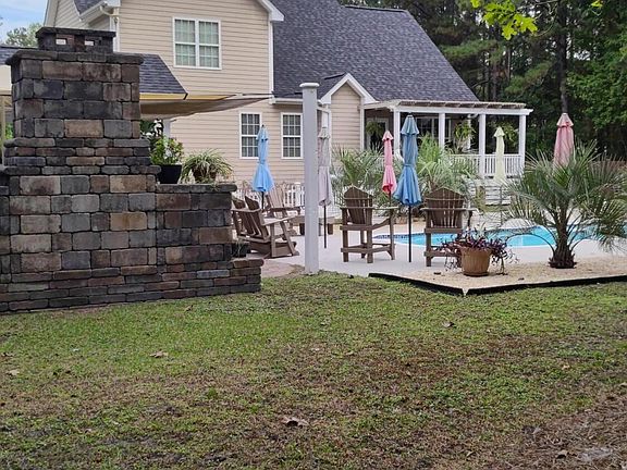 Step outside to discover your large inground fiberglass swimming pool, surrounded by thoughtfully designed outdoor living areas including a custom Pergola, Canopy, a cozy outdoor fireplace, a greenhouse, and a fully fenced backyard.
