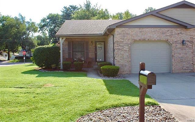 Located at Hickory Bend in Belleville is this mostly brick two bedroom, two bath villa that is not to be missed out on! Walk under the covered front porch and into a spacious living room with vaulted ceilings, ceiling fan and access to the side patio through the sliding glass door. A separate dining room hosts a quaint chandelier. The eat-in kitchen hosts stainless steel appliances and enough room for a breakfast bistro set. The laundry room is conveniently located in the hallway. The first bedroom is nice sized and is close to the full hall bathroom. The master bedroom suite has a trey ceiling with beautiful ceiling fan and a 3/4 master bathroom with a shower. Garage door opener is less than 1 year old. HMS Home warranty included!