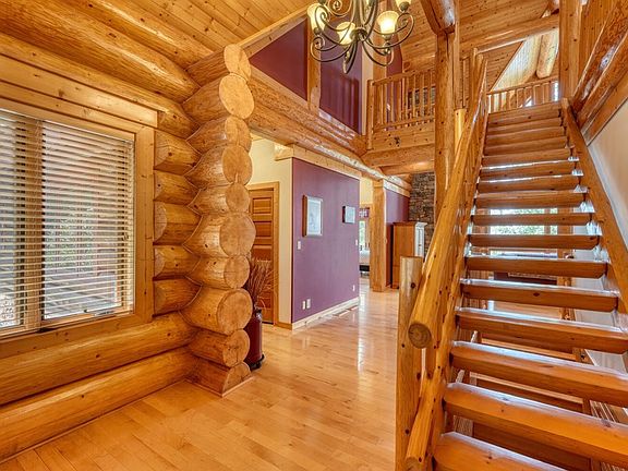 Guest suiteCozy den with fireplaceCustom-built lodge-style log homeSweeping mountain viewsLuxurious primary suiteMassive douglas fir timbersOpen floor plan