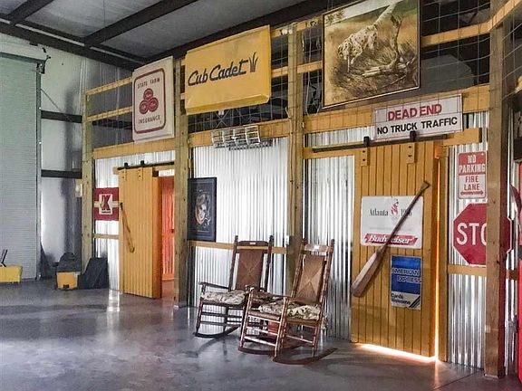 One of a kind property! Metal frame shop perfect for a business or home. This building offers full living quarters currently with 1 bedroom, a fully furnished kitchen with stainless steel appliances, and an extra storage room. The 2nd floor offers an option for a master suite or even a game room. Huge space with tons of potential, no matter your need! Large covered porch, separate RV building, circle driveway, and chain link fence. Convenient to town!