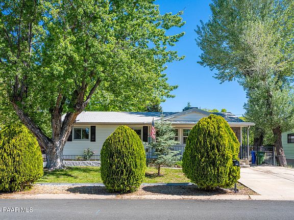 Fantastic Prescott location! Airbnb or family home-the choice is yours! Situated on a quiet cul-de-sac and near shopping, schools, and medical services, this home features a large fenced yard with mature shade trees and a fully finished 240 sq ft guest house with a bedroom and bathroom. The recently updated main dwelling holds 3 bedrooms and 3 bathrooms (two full masters in the house) with 1,256 square feet of living space. Spacious open family room and rustic chic kitchen with center island. Convenient RV gate and plenty of parking, including carport. Great as a primary residence, vacation getaway, or rental property. Schedule your showing today!