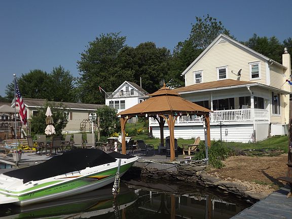 Partially Furnished, year round, Lake Front on private family oriented motor boat Lake Sheridan, will email photos on request irishman104@yahoo.com . 15 minutes north of Scranton. Ideal for extended families Parking for over 8 vehicles..Storage garage…large landscaped lot…app. ¾ acre 15 minutes from I-81..10 minutes to small airport..10 minutes to 9 hole golf Served by 2 fire companies (app. 2 miles away) Lake recently added sewers. All homes mandated to hookup. Low fees. Paved road with mail and newspaper service and winter maintenance 4 seasons home…….catv available….dish now installed…telephone service Drilled well (250’)….2 cell phone towers (Verizon) close by 2 propane fireplaces, 1 vented, 1 non-vented Large trax dock (app 30x30) with seating/dining area with a large, newly constructed, tiki bar with electric….floored attic with blown in insulation Fireplace area and patio with grape covered pergola, apple trees & blueberry plants. Full W/D hookups. Floored attic with blown in insulation. Glassed in sun porch with outside wraparound porch (all vinyl) with swing & glider 1st floor post and beam construction..View the lake from all points New windows/door and insulation…low tax rate…full washer/dryer hookups Wood floors in great room/slate floor in kitchen/bath New metal roof and gutters….vinyl siding …giant sunflowers every year 9 bedrooms orig. 4 now used, 1 computer room, 3 rooms used as closets, all may be used as bedrooms. All rooms app. 8x10 2nd floor has full bath…1st floor has a full bath