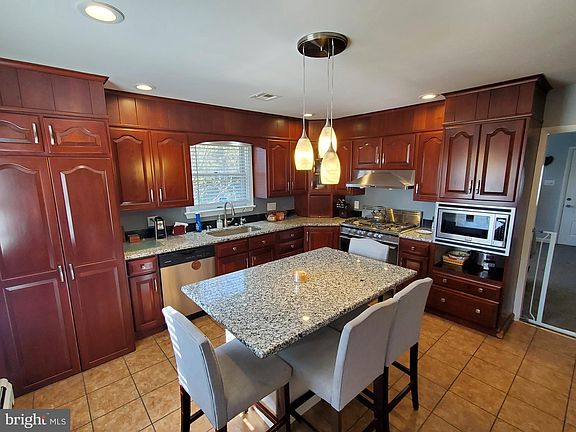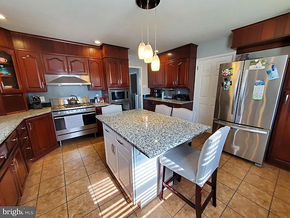 New to the market in Amity Gardens, this large recently renovated ranch home offers many recent upgrades. The beautiful custom gourmet cherry kitchen is enhanced with granite countertops, abundant cabinetry with built-in pantry, a large center island with 3 sided breakfast counter & a commercial style oversized 5 burner gas range with matching hood. The family room addition joins the kitchen, & includes recessed lighting and 5 window panels allowing plenty of natural lighting. There is also access to the 3 season sunroom addition with sliding glass door opening to the rear yard. The dining room includes hardwood flooring, chair rail and wainscot wall treatment. The living room features include a large 3 bay window and hardwood flooring. Three bedrooms are included on the main level, all with hardwood flooring and large closet spaces. The full bathroom with tub and shower, features an updated sink, vanity and fixtures, and a very large linen closet. The lower level is mostly finished space, including a 29 x 11 game room, & 10x 10 office/storage room. There is also a new bathroom that blends traditional and contemporary styling, incorporating a tile/glass shower surround, white and black tile floors, and a modern raised bowl sink with vanity. The laundry room and adjoining remodeled 1/2 bath, are on the main level, connecting the kitchen and attached garage. The laundry includes a full wall of matching cherry cabinets, and the washer/dryer are included. There is a large detached shed storage shed in the rear corner of the yard. The seller has done numerous mechanical updates including new boiler in 2022, central air conditioner 2021, roof 2016, & water heater 2016. Make your appointment today to see this beautiful well maintained brick home, before it's sold!
