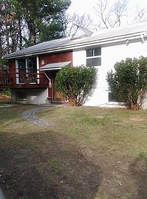 Private woodsy retreat on 5 acres, quick access to routes 290, 395, 20 and pike! Raised ranch features stone fireplace in front to back living room with pretty cherry hardwood floors, cathedral ceiling and sliders to deck. Master bedroom on first floor with walnut hardwood floors and large closet. Eat-in kitchen, granite counters and birch cabinets, new dishwasher and recent built-in microwave. Brand New Furnace! This home needs TLC in Basement walkout level which adds additional approx 900 sf of living area including one bedroom, full bath, office, workroom, utility/laundry and green house.House definitely needs new siding and seller has estimates available.Title V for 3 bedrooms.Land was recently surveyed and wetlands flagged for subdivision plan, this house lot will be approx. 5 acres. Huge Shed 16 x16 with basement offers excellent storage for lawn and garden tools.Some lower level rooms unfinished (workroom, laundry) not included in gross living area.