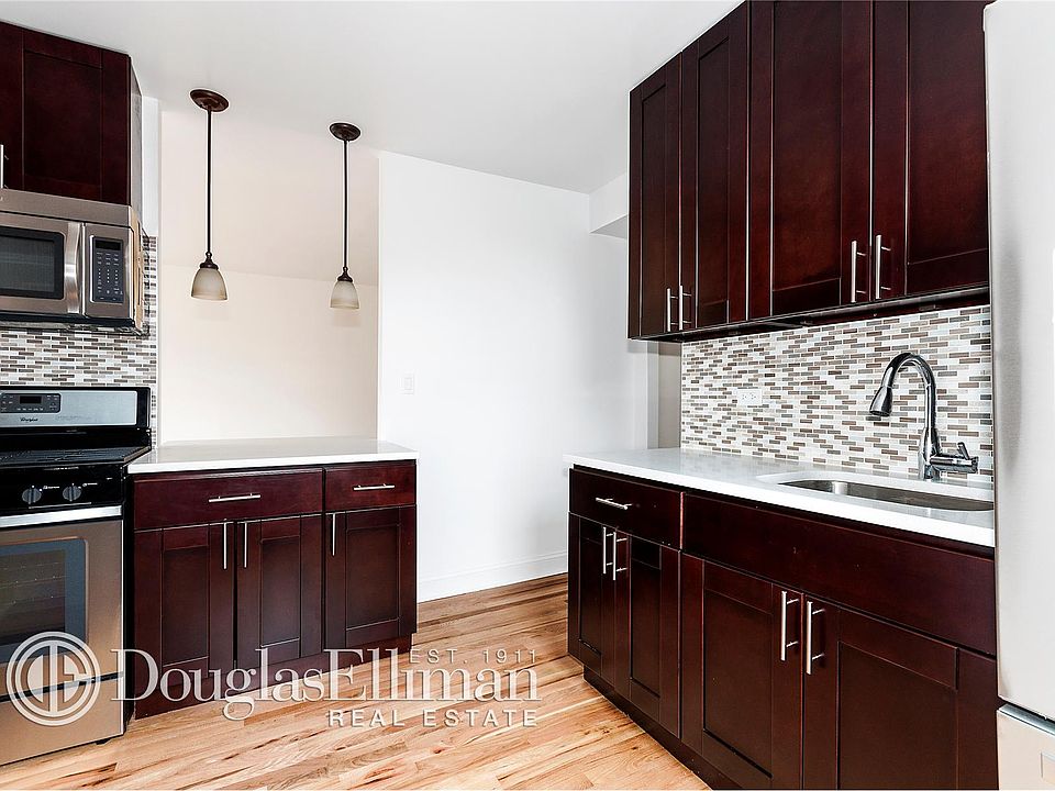 This top floor unit located in the gated community of the Gentry Apartments has been gut renovated and offers a brand new kitchen with stainless appliances. The kitchen is open into the living room and there is new bathroom, 2 bedrooms, large living room with area for dining. Excellent closet space throughout. The building has laundry on every floor, 24/7 security, on site super and garage (wait list). 2 and 5 train is located nearby.
