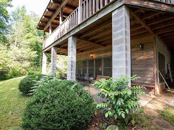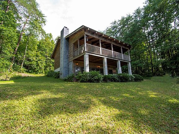 Beautiful home with a view of beautiful Lake Chatuge from the rap around deck/porch! DEEDED ACCESS to put your boat in Lake Chatuge just down the street! This rustic country home is in The Pine Subdivision. Living can be done on the lower floor with the kitchen, laundry, bedroom/bath, and large living located there. Upstairs is another 2 bedrooms and more living area. This home also features a wood burning stove for additional heating, tongue and groove wood walls, covered porch, EXPOSED BEAMS, and Cedar siding. Seasonal views will be wonderful of the lake!
