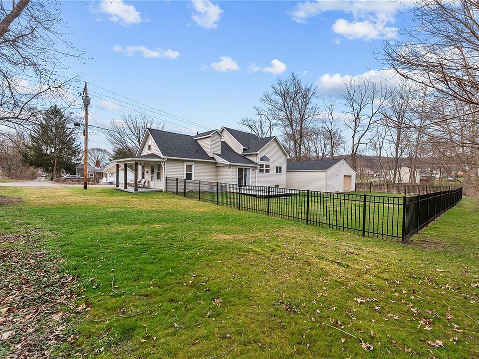 Discover the epitome of luxury living in Zelienople! This remodeled home offers a captivating blend of style & convenience just steps away from the town's bustling attractions. Immerse yourself in the seamless flow of the open-concept layout, featuring a sleek kitchen with SS appliances, that leads to a sprawling back yard that is fully enclosed w/ a brand-new fence & includes a TREX deck making it the perfect entertaining space! The 1st floor also boasts 2 versatile bedrooms which could easily be used as a home office or other options, a full bath, and a dedicated laundry area. Upstairs, unwind in the spacious master suite and another bedroom, accompanied by a full bath. Situated on a DOUBLE lot, the property includes a FOUR-car garage that opens out into the oversized yard! Other updates include a new roof on house/garage (2023), fresh interior paint, & modern light fixtures, 2 high-eff furnaces (2014 & 2016). This move-in-ready oasis awaits you!