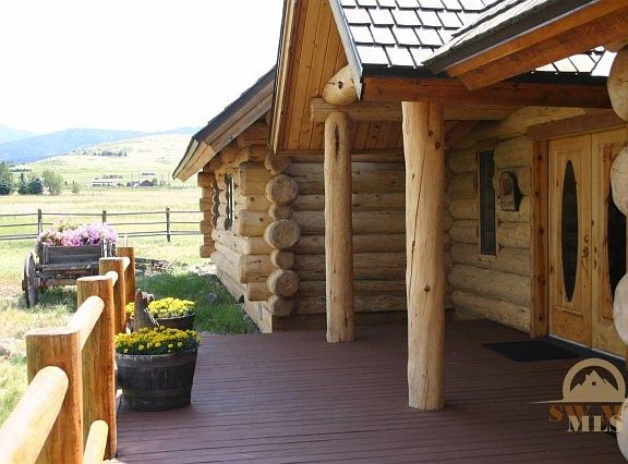 Location is 2nd to none w/pristine views, end of road privacy, bordering conservation easements, parkland & seasonal creek. Hand crafted log home with apartment w/ 14-18" logs inside & out, Pozzi windows, two living spaces & kitchens (separately metered), fully furnished. Balconies from the upstairs bedrooms, multiple French doors, the double sided stone fireplace and quality finishes offer the perfect retreat and tranquility. Property is fenced w/ a barn & corral for horses. Exquisite~