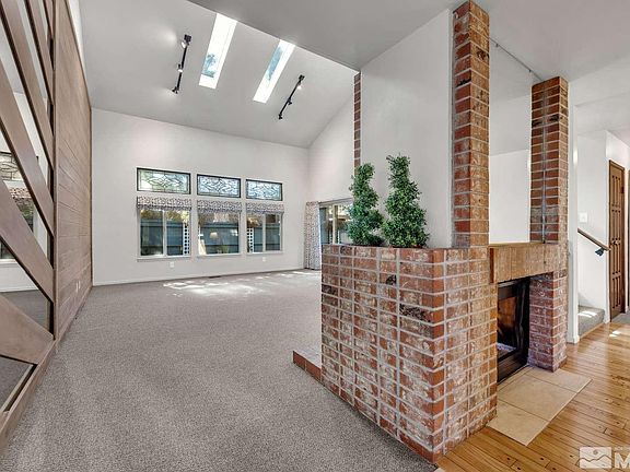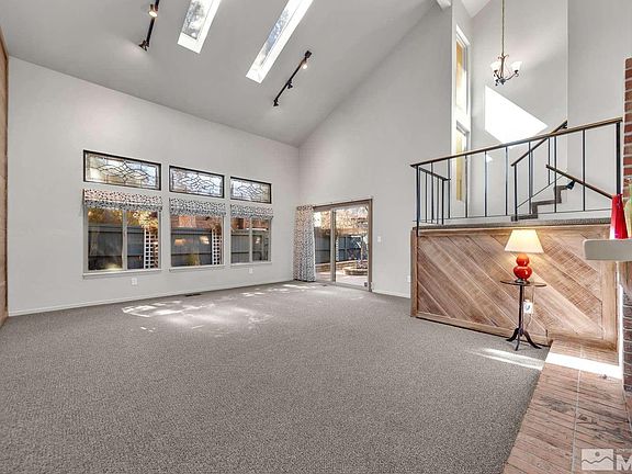 Extraordinary upgraded condo/ townhome nested in the coveted and picturesque setting in the highly desirable Parkwood community, centrally located in SW Reno. A spacious 2,389 sq. ft. home offering 3 bedrooms, 2.5 baths, in addition a large bonus room that can be an office, den or 4th bedroom., This Tahoe inspired designed home is a sanctuary of tranquility and serenity, with extensive custom features, including: New glass double front doors, 3 custom beveled glass windows, custom wood detailed walls in living and kitchen, double sided fireplace (wood and/or gas log, 4 sky lights, wet bar, complete new interior paint throughout, brand new Berber carpeting, wood floors in dining room and in kitchen, upgraded custom kitchen with built-in SS appliances, breakfast nook w/ bay window, wine cooler built-in. Large master bedroom on first level, master bath w/ Jacuzzi/shower combo. Two bedrooms and large bonus room and large bathroom on upper level. New window coverings throughout and lighting. Gorgeous Custom stamped concrete patio and custom flowerbeds. Laundry room w/storage on first floor, 2 car garage w/loft shelf for extra storage. Too many upgrades to list! You’ll be in awe when touring this home!