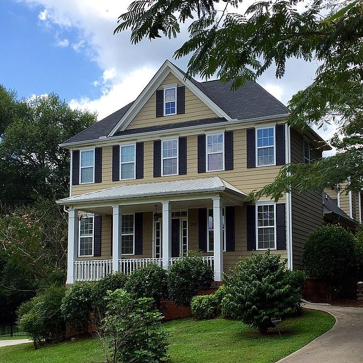 Vintage charm without the "old house" headaches. Great floorplan, very open and inviting. Stacked stone fireplace, built-in entertainment center, hardwood floors, custom moulding throughout, 2 covered porches, 3-car garage and lots of character. Walk-in closets in 4 bedrooms. Sunny breakfast nook leads to covered porch. Master on main. Additional two-bedroom apartment in basement with a full kitchen and laundry area, and a separate one-car garage. 1/10 of an acre dog yard is fenced in with ornamental wrought iron style aluminum fencing. Neighborhood Description: Historic Senoia, convenient to Peachtree City.