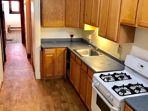 Large 1 bedroom flat on the first floor of a two family home. Nice location. Very convenient to highway. Small yard with potential. Enclosed front porch. New Carpet in living room and bedroom. New flooring in kitchen and hallways. Heat Hot Water, Electric, Garbage all included. Will provide washer and dryer for an additional $35 a month.