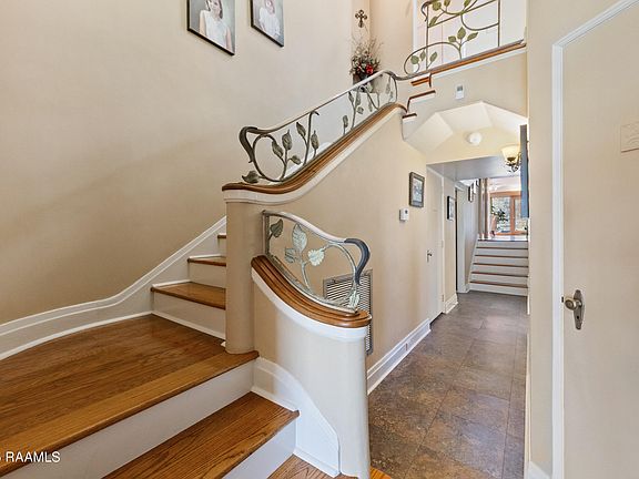 This one-of-a-kind, multi-level Art Deco masterpiece in New Iberia, LA, is truly a rare find. Designed in 1938 by renowned architect Owen Southwell, who was inspired by the 'Homes of the Future' exhibit at the 1933 Chicago World's Fair, this unique home is listed on the National Register of Historic Places.Nestled on the tree-shaded banks of Bayou Teche, this property offers a tranquil setting just a short stroll from downtown New Iberia and steps from City Park. The home boasts 3 bedrooms, 3.5 baths, and 3,561 square feet of living space, each room thoughtfully designed with the signature curves and details of the Art Deco style.The spacious master suite is a true retreat, featuring 11' ceilings, built-in bookshelves, a large window bench, and an Art Deco gas log fireplace. The great room is perfect for entertaining, with a gas or wood-burning fireplace, skylights, and a large deck overlooking the bayou.The study, located downstairs, includes built-in shelves, and the cozy breakfast nook comes with benches, a table, and a lovely view of the surroundings. Upstairs, the glass sunroom boasts a unique ceiling and breathtaking views of the bayou.Additional highlights include: The first home in Iberia Parish with central AC and heating. A 1987 remodel with updated plumbing and electrical systems. An Art Nouveau staircase with a stunning stained-glass window view. A property ideal for entertaining or serving as a show home.This extraordinary home combines architectural significance, modern conveniences, and an unmatched location. Don't miss the opportunity to make this historic treasure your own.