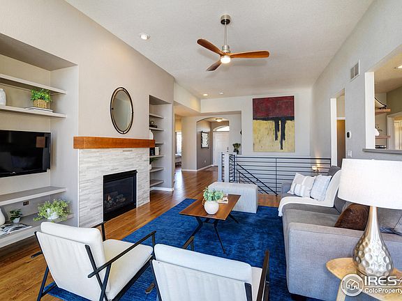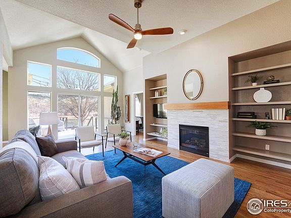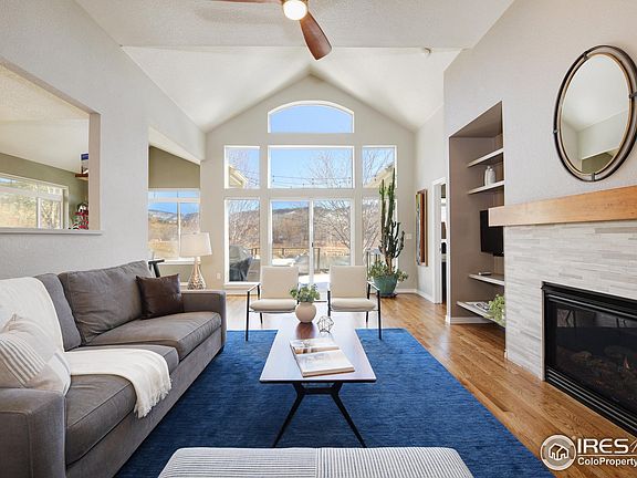 Beautifully updated ranch-style home with a view and an unbeatable lifestyle. The location is exceptional as this home backs to a neighborhood walking path and overlooks the community ponds along the St. Vrain River. Embrace main floor living in an open plan with vaulted ceilings and large pictures windows. The interior has been lovingly updated including a gorgeous culinary kitchen, elegant primary bathroom and modern lighting and interior finishes. The interior feels both comfortable, well-cared for and modern. Large finished basement with family room and pool table area (pool table is included!) plus an additional guest room, work out and storage areas. The basement even has its own exterior entrance. Owned solar panels help with the homes utility costs. The home has plenty of outdoor spaces to enjoy including a covered front porch and spacious back deck and fenced yard. Attached 2-car garage with EV charger. Step outside and you can walk, bike or golf cart to all of Lyons favorite places including parks, the river and even downtown for dinner. Walking or biking distance to Lyons Middle/Senior School for classes, sporting events or community performances in the brand new auditorium. Whether it's with your kayak, paddle board, mountain bike or hiking boots, you will have ample opportunities to play right out your backdoor. This home provides everything you need an inviting, spacious and comfortable Lyons lifestyle.