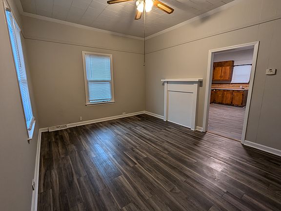 Freshly painted inside and out on a quiet street. This home features two generously proportioned bedrooms, a kitchen with plenty of cabinet and counter space, new double paned windows, central heat and air, washer/dryer hookups in the kitchen. There is both a front porch and a rear deck for additonal space. Clean and move in ready! MInimum lease 1 year. Tenant is responsible for all utilities.