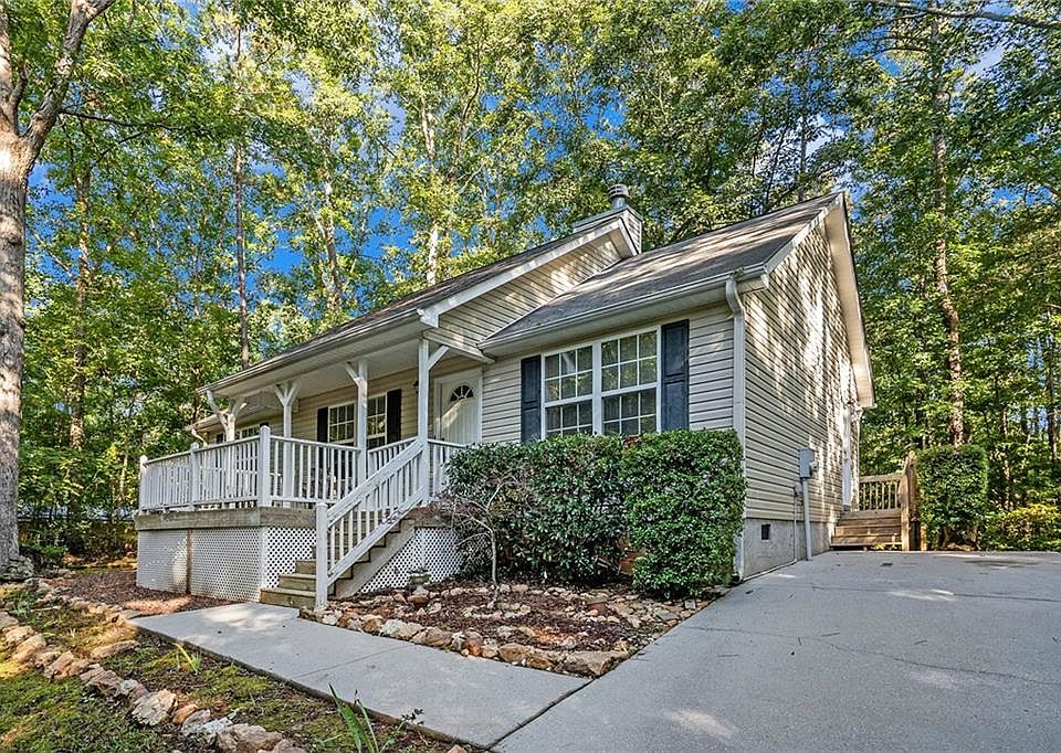 Come and see all this ranch style home in Turtle Cove has to offer. The rocking chair front porch welcomes you home with both covered and exposed space. There is a gate located on this porch too. As you enter the living room you will notice vaulted ceilings and a cozy fireplace. There is a split bedroom plan and all the bedrooms have new carpet! The eat-in kitchen has a new dishwasher and all electric appliances along with pantry space. The primary bedroom has tray ceilings, an ensuite bath, and a walk-in closet. The kitchen opens up to the backyard with additional deck space to enjoy! Enjoy this resort-style lakefront community with white sand beaches, 9 9-hole golf course, tennis/pickleball courts, boat ramps, a clubhouse with a restaurant, and a large pool with plenty of covered swimming space!