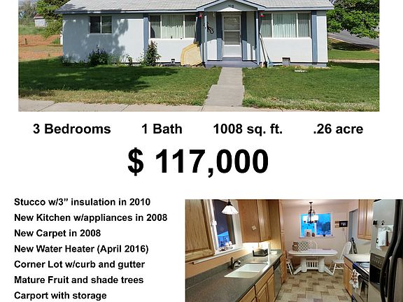 Great home in an excellent neighborhood! Well loved and owned by two generations of the same family. Located on a corner lot with curb and gutter, sitting on .26 acre sprinkler system and mature fruit and shade trees. Stucco over 3" insulation and double glazed windows make it both more energy efficient and quiet. Kitchen remodeled in 2008 with new cabinets, counters appliances and tile floor (including a decorative medallion). (the light over the dining table and sink not included) Carpeting throughout house replaced in 2008 also. 50 gallon water heater replaced in April 2016. Front load washer and dryer not included but could be negotiated.