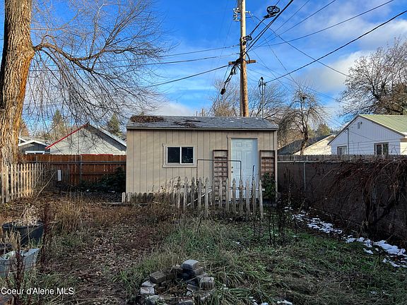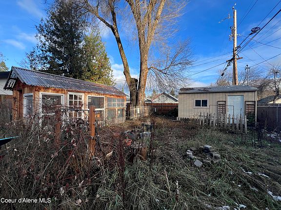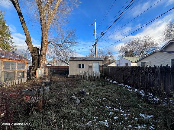 Great Home with close proximity to down town Coeur d'Alene. Well cared for home. Large fenced back yard has a green house, garden shed and detached work shop. Large back patio, great for entertaining. Home has a nice living/dining area, 2 fireplaces, finished basement. Endless potential. Home is being sold 'As-is'