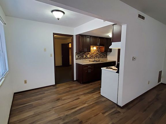 As soon as you enter the apartment, you are welcomed inside by the brand new wood grained Luxury Vinyl Plank Flooring, which leads you through the spacious living room. Next, the flowing open floor plan guides you through the Bright Dining Area and into the Beautifully Remodeled Kitchen.
