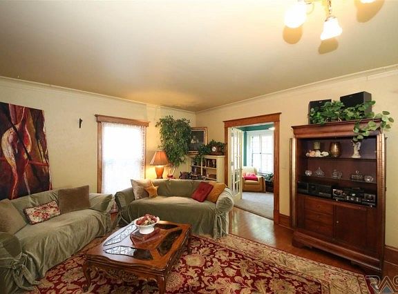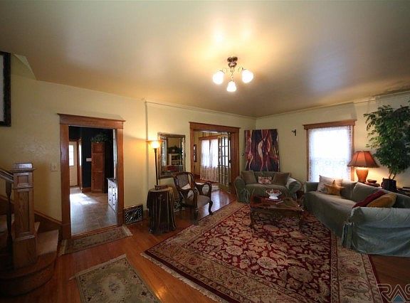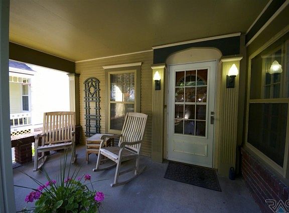 Gorgeous 1908 historic home in the heart of the Cathedral Historic District - a block from the Cathedral, close to downtown, Falls Park and the bike trails. Home has 3 stories and is on the National Historic Registry as well as featured on the historic home tour, completely restored, painted and decorated with rich historically researched colors. Main floor features a grand oak staircase, original oak hardwood floor and original oak woodwork, all beautifully restored. Living room has solid oak built-in bookcases, beveled glass French doors to bright and airy sunroom. A second set of French doors opens to formal dining room featuring an antique chandelier. The second-floor master bedroom with walk-in closet is double size and has a private sunroom. Full bath is updated with ceramic tile and shower/whirlpool tub. Third floor has a very large bedroom with 2 large storage closets. Large deck overlooks well-landscaped, private yard. Enjoy summer evenings on the front porch.