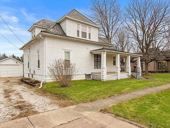 Step into this character-filled home featuring high ceilings, natural woodwork and classic details throughout. Offering 3 spacious bedrooms and 1 full bath, this property is ready for your personal touch. Recent updates include a garage roof (2019) and some newer appliances. Situated on a generous corner lot with large carriage barn with loft and a 1-stall garage, there’s plenty of space to enjoy both indoors and out. Don’t miss the opportunity to make this home your own—property is being sold as-is!