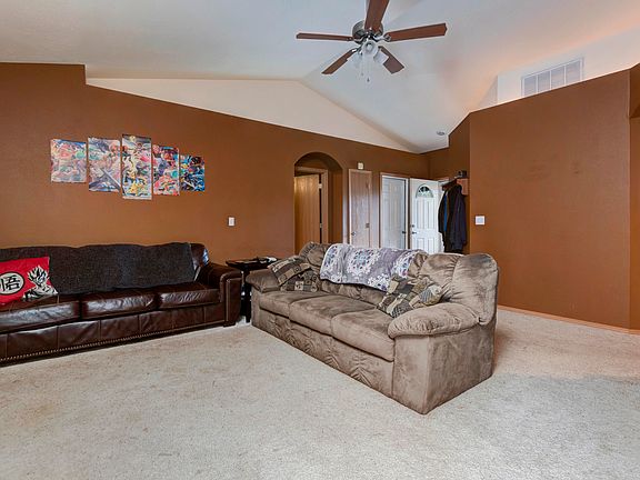 ready to move into...you will love this split floor plan 3 bedroom 2 bath home with large living room with vaulted ceiling and lighted trays to display all your goodies! The kitchen/dining room is open with lots of natural light! The Corner lot is amazing with privacy fenced backyard, patio & storage shed.