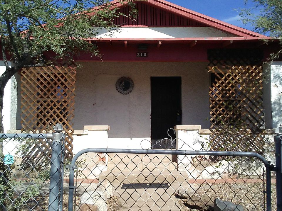 One block from the University of Arizona. A small 2 bedroom 1 bath house,with front porch sits on a large lot with a front, side and BIG back yard that is fenced. There is parking on the North side of the house and in the back yard. There is a large porch in the back that might be able to be enclosed. And there might be room for a guest house. There is a shed.
