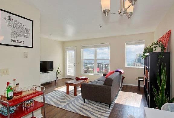 A beautifully updated 1 bedroom / 1 bath condo in downtown Portland. Free parking. Available Now for $1800 a month. This condo is one block from NW 23rd and Burnside, called Uptown Condominium. Conveniently located close to everything but also it's very quiet with fantastic view of downtown and Mt Hood. Walk to all the shops and restaurants on NW 23d. This unit is private, cozy and bright, on a 2nd floor. It has hardwood floor and stainless steel appliances. Appliances: Refrigerator, dishwasher, oven, microwave, washer, dryer. Amenities: Washer, Dryer Parking: This unit has 1 free parking space.