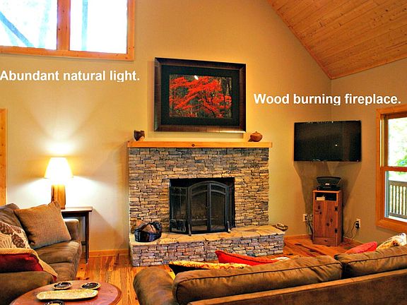- Fireplace features: Wood Burning, Stone