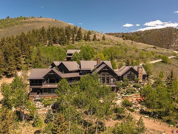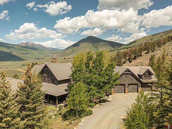 An incredible and rare offering at Roaring Judy Ranch near Crested Butte, this spectacular 118 acre ranch property borders US Forest Service land and features stunning 100-mile mountain and valley views, all day Colorado sunshine and a beautiful mix of dark timber and aspen groves. Roaring Judy Ranch borders the protected Almont Triangle State Wildlife area, home to a variety of wildlife including big horn sheep, elk and deer. Convenient yet private, from this central location it's just 18 miles down valley to Gunnison's jet served airport and 12 miles up valley to the historic mining town of Crested Butte and the ski resort. Nearby, the Jack's Cabin Cutoff road provides quick access to the public lands and world class fly fishing on the legendary Taylor River. Whether you are entertaining a large group, hosting a reunion or leading your crew on a trail hike from the front door, this legacy property will accommodate family and friends in style and grace for years to come. Every square foot of the spacious six bedroom ranch house and the one bedroom guest cabin is dressed in exquisite finishes and materials including reclaimed wood, wide-plank and flagstone flooring, gorgeous posts, soaring beams and trusses, American Clay walls and designer lighting and hardware. The main level living room and primary bedroom suite both enjoy commanding rock fireplaces and every bath features amazing custom vanities, tops and tile treatments. The spacious chef's kitchen features island seating, a Viking range and hood, a Subzero refrigerator and Thermador wall ovens. Among the home's many distinctive architectural elements, the sky bridge connecting the main living area to the north wing is a stand out with dramatic stone floors and a captivating view of iconic Red Mountain to the west. Other interior highlights include a state-of-the-art home automation system for sound, lighting, window shades and security. There is an oversized three vehicle garage that includes a caretakers apartment above and down below there is another big garage and storage space perfect for ATVs, snowmobiles, bikes and skis! Outside, flagstone steps, walkways and patios connect the covered porches to the amazing wildflower gardens, water features, the wood burning fire pit and the well designed outdoor living spaces and expertly outfitted outdoor kitchen. The property is fenced and includes a loafing shed and riding arena. The property's furnishing package is negotiable. Showings are by appointment only.