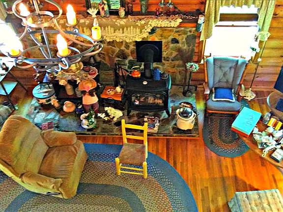 Quaint custom built log home situated on 5.8 acres of well manicured land, well maintained with 3 bedrooms 3 baths sun room exposed beams, cathedral ceiling, rock wall and platform for wood stove, metal roof. Come enjoy what the mountains has to offer in your very own log home on acreage.
