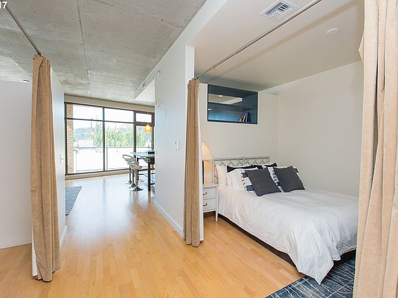 Modern living in the heart of downtown Hood River! Open and bright loft with hardwood floors, radiant heat, floor to ceiling windows, high end finishes and a patio to enjoy the views of the river and Underwood Mountain. 1 bed/ 1 bath with additional sleeping area. Underground parking space with locked storage unit.