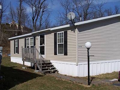 Walk into an open floor plan with a wood stove. 2 full baths, one in the master bedroom. A large closet in the master bedroom. In the 3rd bedroom, a spa has been added. Wall to wall Carpet. Mud room with hookups for washer and dryer. Walk out on the back deck and enjoy the pond. Shed for yard tools. Larger lots in the park. Minutes from Route 61