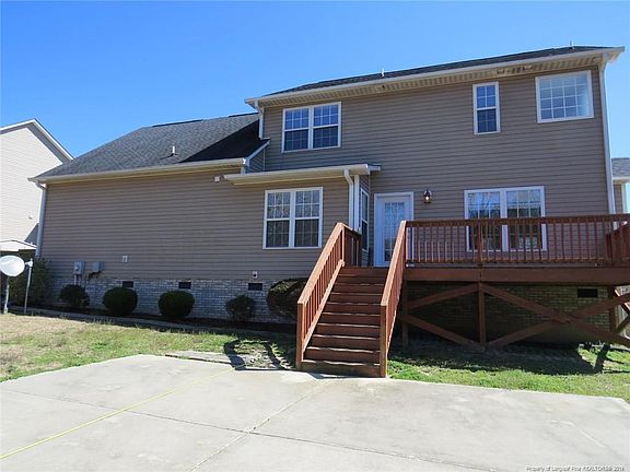 Great 3 bedroom 2 1/2 bath home that's located in a quiet neighborhood 20 minutes from either Ft. Bragg or Sanford. Large 1.18 acre lot with a big backyard for the kids. Nice deck and concrete pad for relaxing and grilling on those warm, pretty nights. Rocking chair front porch for your morning coffee. House has been freshly painted, has stainless appliances, trey ceilings, a great bonus room that includes an office area and 2 additional storage areas. Nice sized laundry room right off the garage, formal dining room, breakfast area, large family room and formal living room...this house has it all! Bring your family and you'll quickly see that this is the one for you!