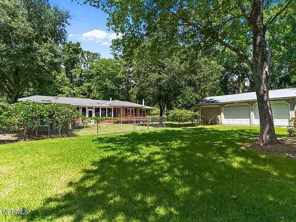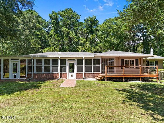 Welcome to this renovated single level ranch style home located just outside the heart of Jacksonville. Location is PRIME with proximity to area beaches, restaurants, & minutes to the main gate of Camp Lejeune. A beautiful lot w mature trees greets you as you drive up & you can imagine rocking with a glass of lemonade on your covered front porch. This house was made for a family! With a 2 car attached garage AND a detached 3 car garage/workshop, it's perfect for someone wanting to have plenty of space to tinker. Inside the large picture window fills the living room w light. Right away you feel the good vibes from new LVP floors throughout & the fresh paint on all the walls, trim, & ceiling. There are also new light fixtures, switches, & receptacles throughout, & updated bathrooms. The kitchen has loads of storage including a pantry w custom pull out shelving for all your kitchen essentials. One of many highlights of this home is the expansive sunroom off the back of the home. There are endless possibilities; a cozy reading nook, craft room, a game room w a pool table & big screen tv to entertain friends & family, or a sunny & bright office tucked away from the hustle & bustle of the home. A large owners suite at the opposite end of the home with a fireplace ensures a quiet space for rest and retreat at the end of the day. Unwind w/ a warm shower in your updated bathroom before snuggling beneath fluffy blankets in bed w the latest bestselling book. There are 2 guest bedrooms and a hall guest bathroom. Spend evenings on your back deck enjoying a crackling fire in a fire pit watching the sky turn beautiful shades of pink & purple. An attached oversized 2 car garage is versatile & will give you the space to bring your cars inside from of the rain & heat of the summer while also working on all your hobbies. The detached garage located around back is the ultimate workspace for the hobby enthusiast. Home is pre 1976 so will have to be a cash sale.