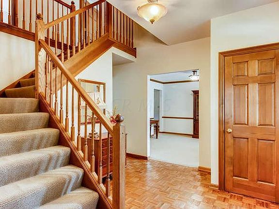 Welcome Home! Stunning architectural details throughout this home with great entertaining and living spaces throughout! First Floor Den, updated Kitchen w/ granite counters, stainless steel appliances and loads of cabinet space, and a breakfast bar overhang, vaulted Great Room has huge windows, a fireplace w/ brick surround and built in shelving overlooking the private and treed backyard and patio. First Floor Den, Dining Room and Living Room. Private Owner's Suite w/ a nursery/sitting room, vaulted ceiling, and huge closet, as well as a private full bath w/ Jacuzzi tub and shower. Spacious additional bedrooms, Finished Lower Level. Great Located close to everything Downtown Powell has to offer including parks, pool, and pathways connecting you to everything and everyone!