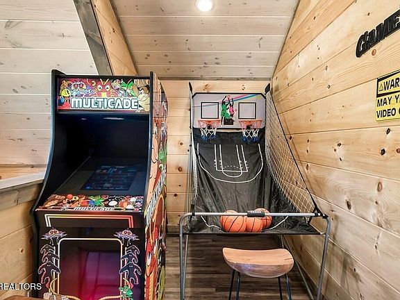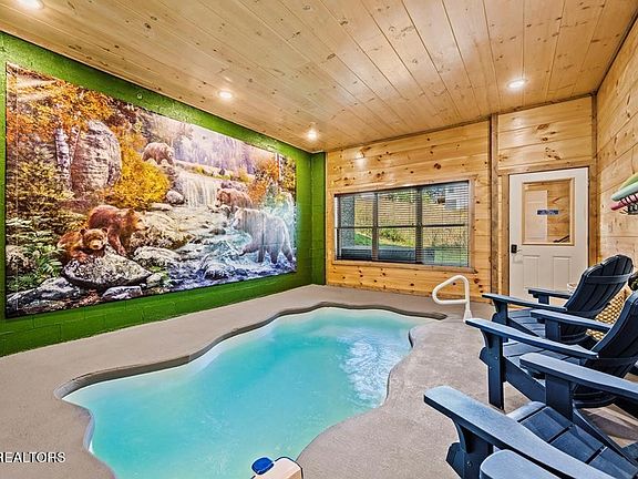 Step into a world of luxury, and comfort with this exquisite 3-bedroom, 3-bathroom cabin. Perfectly designed to balance aesthetics and functionality, this cabin welcomes you into an oasis of modern amenities and breathtaking appeal. Featuring a mix of comfort and entertainment, this cabin offers a private indoor pool a must-have for guests seeking relaxation or families carving out unforgettable memories. Conveniently located within close proximity to key attractions; 11 miles to Dollywood, 18 miles to Great Smoky National Park, and 19 miles to Gatlinburg, this cabin is a hot spot for tourists. The main floor offers an inviting open floor plan that features a gorgeous kitchen with an island, leading onto an inviting living room fitted with a 65-inch smart TV and electric fireplace. This floor offers 1 Bedroom with a king-sized bed and full bathroom and 1 Queen Sleeper sofa. The second floor boasts a fully loaded game room with Air Hockey, Arcade with over 60 games, and Hot Shot Basketball. A workstation desk, and a spacious bedroom fitted with a king-sized bed, smart TV, a luxurious master bathroom, as well as a walk-in shower. In the basement, you'll find This is the crown jewel of the cabin. The basement is the heart of this cabin, offering a heated indoor pool, an 8 person hot tub, bunk beds, an in-wall Pac-Man arcade, and a full bathroom. Easy access roads...no steep hills or crazy curves to contend with. Don't miss your chance to own a piece of prime property in the Smokies. Make the right move today! Drone Photography used.