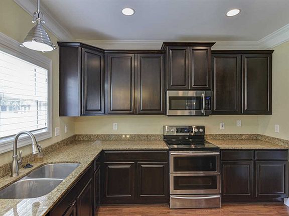 - RoomKitchenFeatures: Granite Counters, Pantry, Eat-in Kitchen, Floors-Hardwood, Cabinets-Stained, Bar