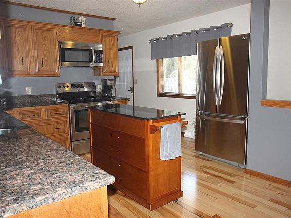 Meticulously well kept 4 bedroom 2.5 bathroom home in one of the best locations in Spearfish, close to medical clinics, the hospital, and grocery stores. This spacious home boasts granite countertops in the large kitchen with wood floors, granite covered island and a dining room that opens onto the deck. Roomy main floor laundry adds to the comfort of the home. Conserve energy and save on heating with the solar panels during the Winter months. There are no stairs for entry into the home, so it is easily accessible. End your days relaxing in the spacious den and bar area in the lower level of this home. Entertain on the back deck covered with the pergola while animals or children play in the yard.